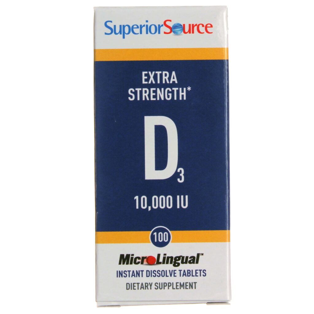 É um suplemento alimentar em tabletes microlingual de alta potência (10.000 UI) da marca Superior Source, projetado para otimizar os níveis de Vitamina D no organismo com rápida absorção.