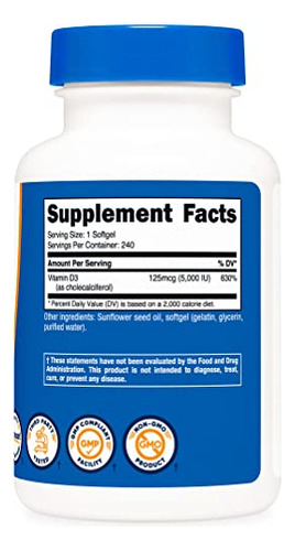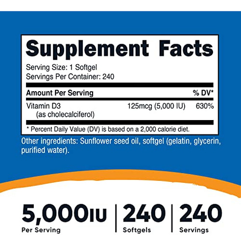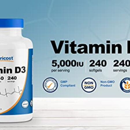 A vitamina D da Nutricost fornece 5000 UI de vitamina D3 por cápsula, ao mesmo tempo que oferece o melhor preço disponível. A vitamina D3 da Nutricost usa apenas ingredientes da mais alta qualidade, não é transgênica e não contém glúten.