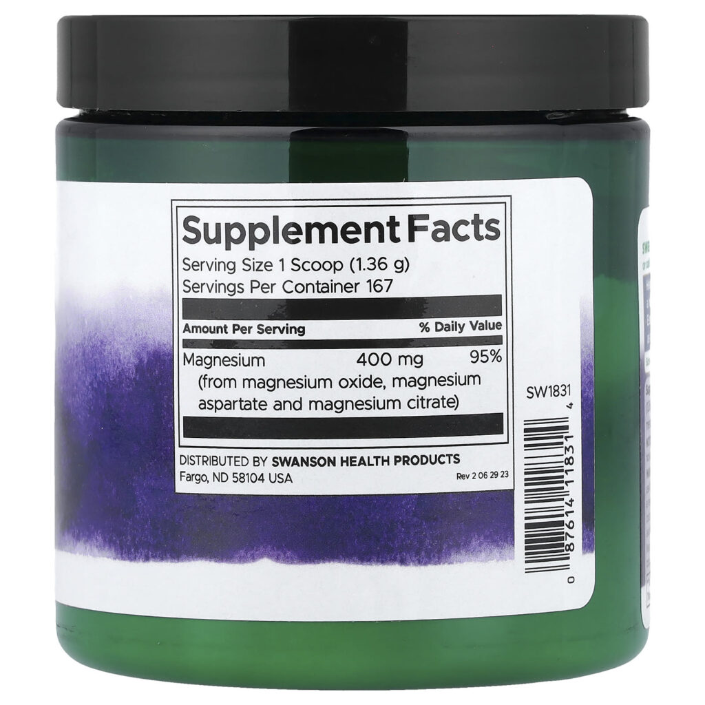 Swanson Complexo de Magnésio Triplo em Pó 227 g (8 oz) – Swanson Suplementos Minerais Magnésio Complexo de Magnésio.
