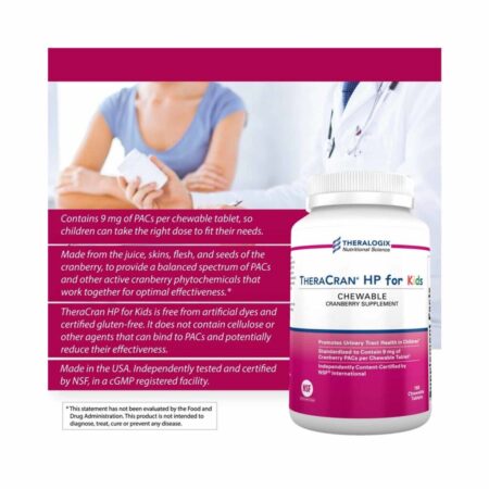 Descubra o TheraCran® HP da Theralogix, uma fórmula inovadora desenvolvida especificamente para promover a saúde urinária e fortalecer o sistema imunológico das crianças. Com 180 tabletes mastigáveis, este suplemento oferece uma abordagem nutricional avançada, utilizando ingredientes de alta qualidade para garantir o bem-estar infantil.