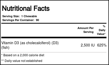 | Vitamina D3 (Colecalciferol) | 2.500 UI | 313% |
