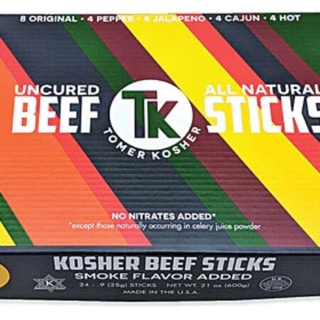 Descubra o prazer de saborear os Tomer Beef Sticks Kosher Variados, a escolha perfeita para um lanche rápido, nutritivo e cheio de sabor. Com 24 unidades generosas, este pacote oferece uma experiência gastronômica autêntica, ideal para consumidores que buscam qualidade e conveniência em suas refeições. Feitos com carne bovina kosher de alta qualidade, esses beef sticks são o acompanhamento perfeito para qualquer momento do seu dia, seja no trabalho, após o treino ou em uma aventura ao ar livre. A qualidade kosher garante um produto preparado de acordo com rigorosas normas alimentares e religiosas, proporcionando segurança e confiança a cada mordida. Experimente a praticidade e o sabor inconfundível dos Tomer Beef Sticks, um verdadeiro deleite para o paladar.
