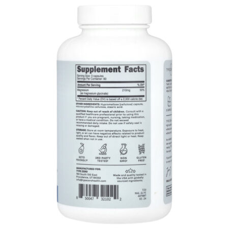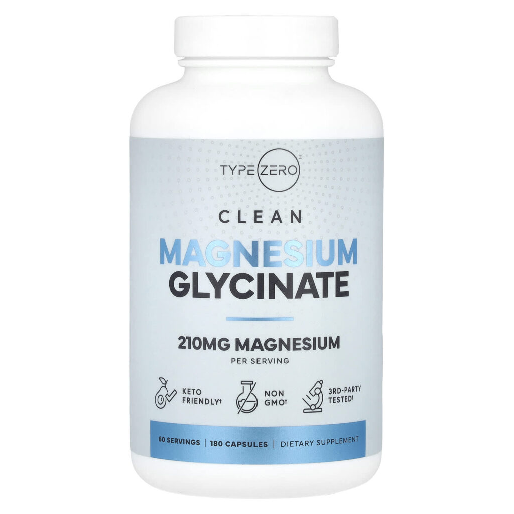 TypeZero Clean Glicinato de Magnésio 180 Cápsulas (70 mg por Cápsula) – TypeZero Suplementos Minerais Magnésio Glicinato de Magnésio.