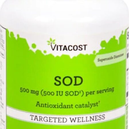 Descubra o poder do Vitacost SOD Antioxidant Catalyst, um suplemento inovador formulado para oferecer uma defesa antioxidante robusta diretamente em suas células. Cada dose contém 500mg de um complexo exclusivo de Superóxido Dismutase/Gliadina (GliSODin®), garantindo 500 Unidades Internacionais (UI) de SOD, uma enzima vital na neutralização de radicais livres prejudiciais. Ideal para quem busca otimizar a saúde celular, promover o bem-estar geral e combater os efeitos do estresse oxidativo.