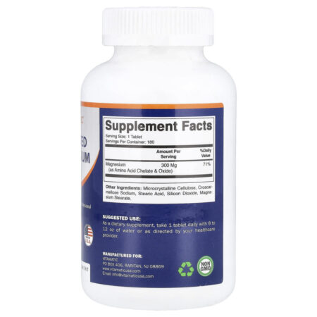 Vitamatic Magnésio Quelato 180 Comprimidos (300 mg por Comprimido) – Vitamatic Suplementos Minerais Magnésio.