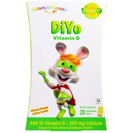 O Vitamin Friends DiYo é formulado pensando em um público amplo, mas a dosagem específica (400 UI de Vitamina D + 100 mg de Cálcio) é mais voltada para adultos. Para crianças, é sempre recomendado consultar um pediatra ou nutricionista para determinar a dosagem e o tipo de suplemento mais adequados às suas necessidades específicas. A supervisão de um adulto é essencial caso crianças consumam.