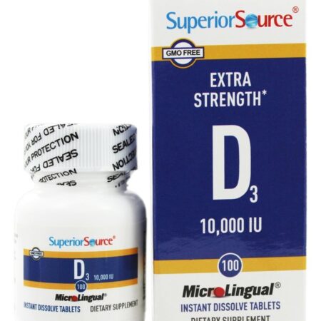 Superior Source – Vitamina D3 Potência Extra Dissolução Instantânea 10,000 UI – 100 comprimidos