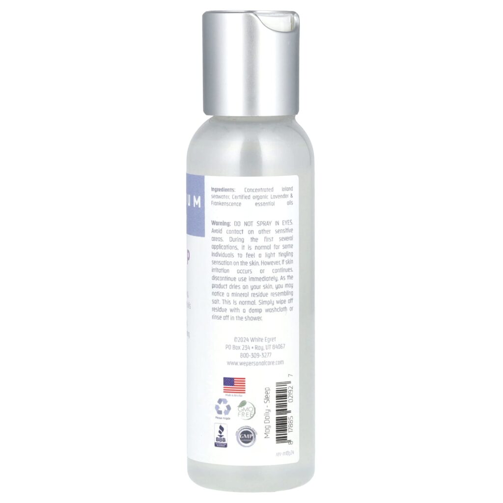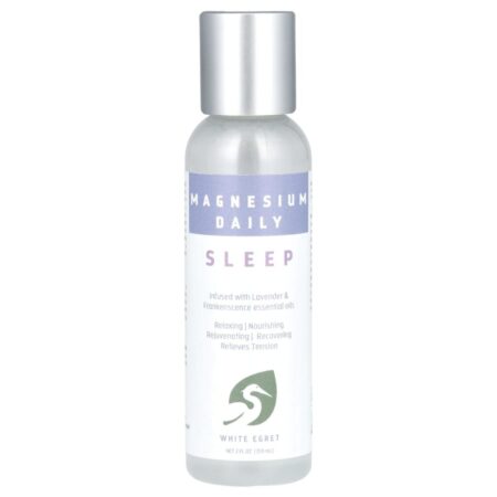 White Egret Magnésio Diário Sono 59 ml (2 fl oz) – White Egret Personal Care Banho e Cuidados Pessoais Armário do Banheiro Tratamento para Pele Suplementos Minerais Magnésio.
