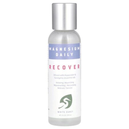 White Egret Magnésio Recuperação Diária 59 ml (2 fl oz) – White Egret Personal Care Suplementos Minerais Magnésio Banho e Cuidados Pessoais Armário do Banheiro Tratamento para Pele.