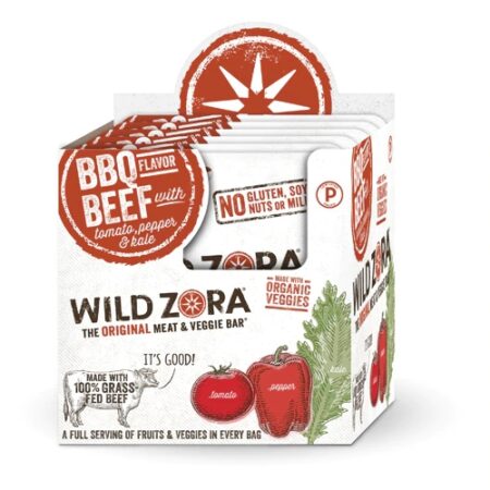 Descubra o sabor autêntico e os benefícios nutritivos das Barras Wild Zora BBQ Beef. Ideal para quem busca uma opção de lanche saudável e saborosa, perfeita para acompanhar seu dia a dia agitado. Cada barra de 28 gramas combina a robustez da carne bovina com a doçura do tomate, o toque picante do pimentão e o frescor da couve, tudo em uma explosão de sabor BBQ.