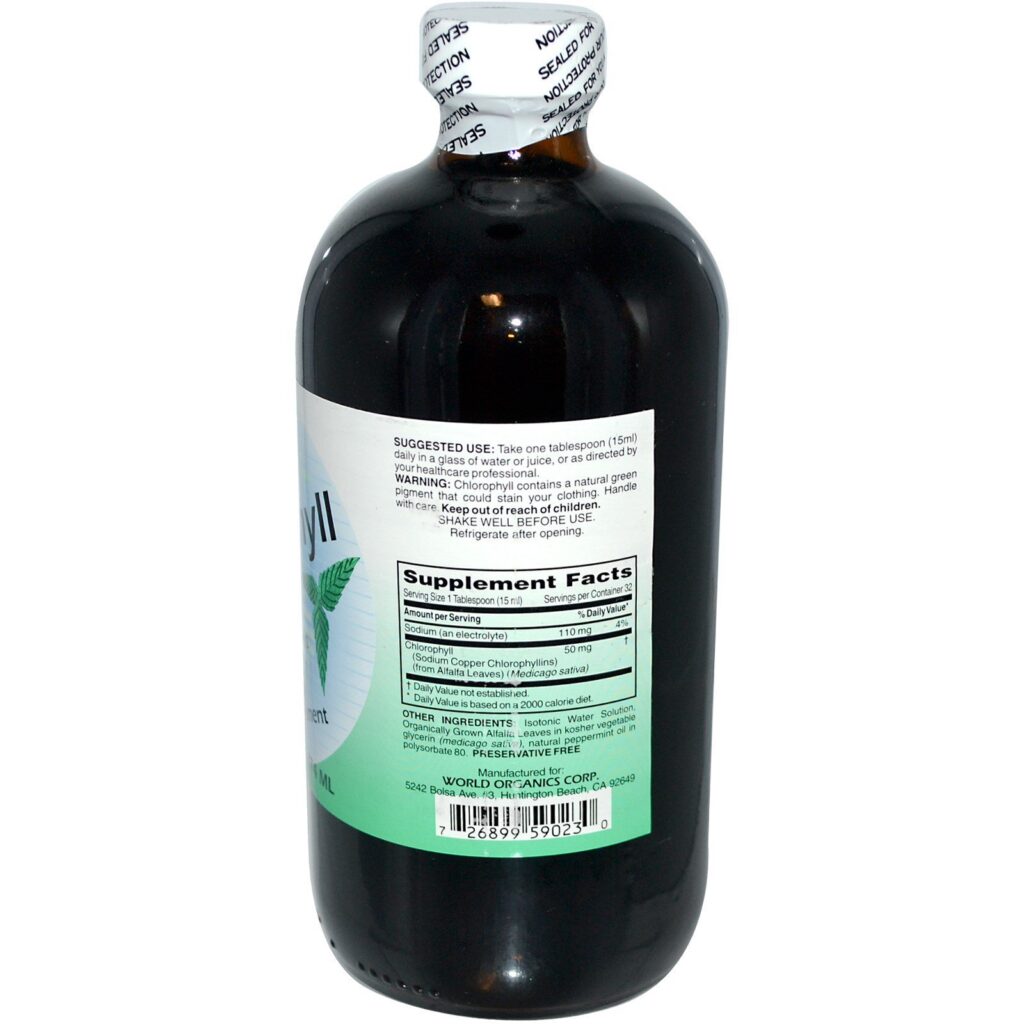 A Clorofila Líquida World Organic é derivada exclusivamente de folhas de alfafa de alta qualidade. A clorofila é essencial para o processo de fotossíntese … muitas vezes chamado de “bloco de construção da vida”. Não há vida sem clorofila. A clorofila é um nutriente natural, solúvel em gordura, que a World Organic produz na forma dispersível em água para a obtenção dos melhores resultados.